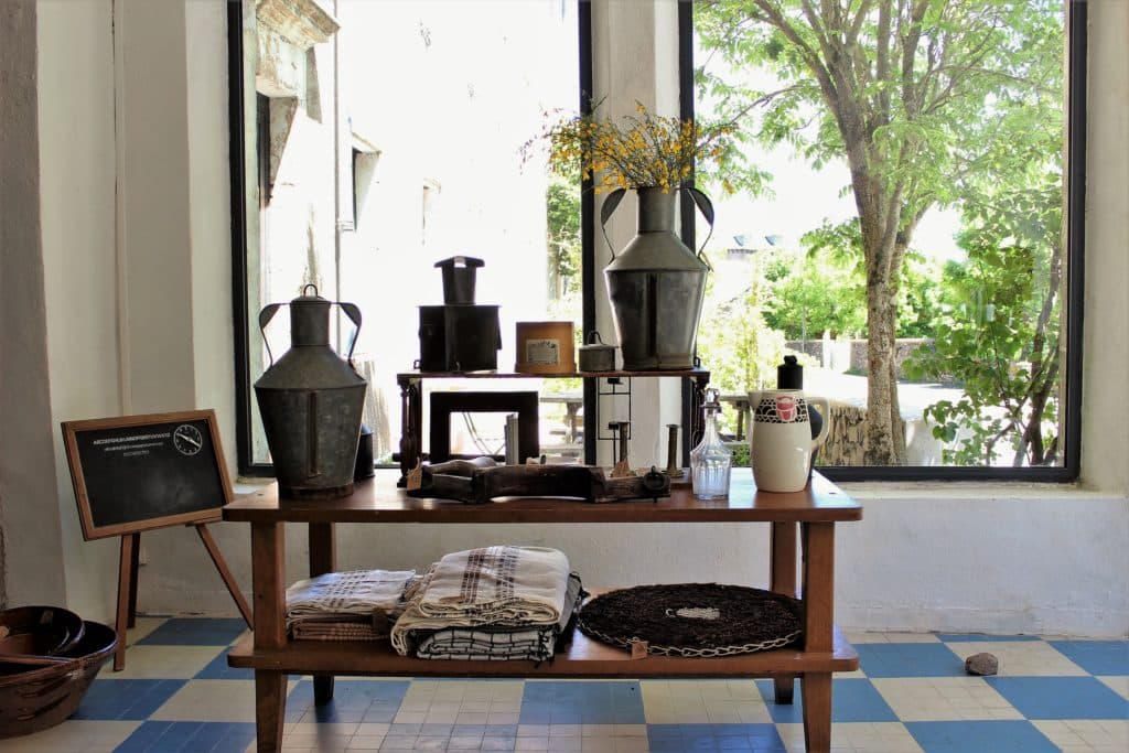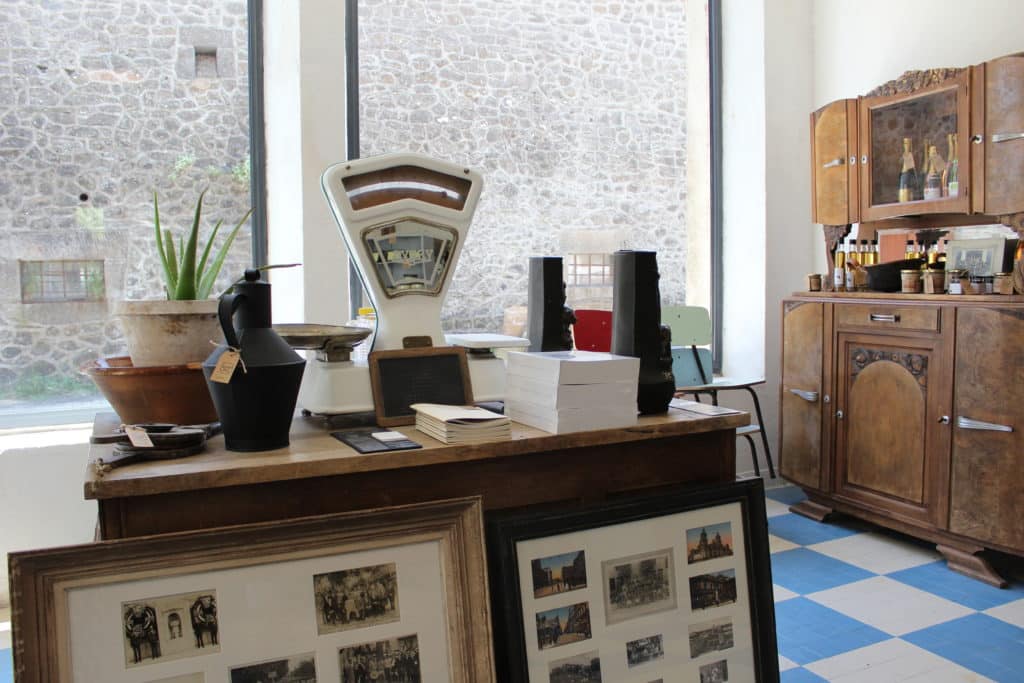 La grande salle au rez-de-chaussée de La Colonie, par ses proportions, s’offre à la déambulation comme le ferait une galerie. C’est-à-dire que le regard, invité à s’y promener, s’arrête ici, au mur, là, au sol, sur un objet d’abord énigmatique, bientôt expliqué, ou une photographie de Gert Fröbe (l’acteur de Goldfinger), ou encore sur un jouet ancien. On saisit clairement, dans la disparité des objets, des meubles, des documents cartographiques, réunis sur les présentoirs, les étagères, mais plus encore dans la facture particulière à chaque objet, que ce soit leur singularité, leur cachet, le caractère somptueux d’un bois patiné, d’un assemblage de métal, ou bien la curiosité pour une copie de sculpture, comme une tête de Doge en plâtre, assumée dans sa simplicité ; on devine donc, disions-nous, que Cyril Lérisse a hérité ce goût très sûr, ce coup d’œil et cette curiosité, et l’on comprendra bientôt dans la conversation, voire la négociation (toujours cordiale), qu’il a grandi dans une galerie d’Antiquités et brocante que ses parents tenaient en Sarthe puis en Touraine. L’intuition qu’il a du métier, ce qu’il a proposé d’emblée dans les locaux de La Colonie, c’est cet héritage, mais qu’il a su étoffer de ses voyages, aux États-Unis notamment où il a vécu. Et aussi d’une expérience acquise par la création de lieux publics. Il ne faut pas négliger la présence, dans la boutique, de productions contemporaines, et la mise en évidence de partenaires qui n’ont rien d’antique… L’évolution de La Colonie, son agrandissement familial, ont permis un fonctionnement saisonnier plus souple, et l’hiver, désormais, la famille Lérisse part voyager. Ce fut d’abord le Mexique, puis le Portugal et la Sicile. Destinations qui alimentent cette caverne d’Ali Baba qui n’est ni une caverne ni le repaire de brigands, mais bien un lieu d’exposition, et de vente, ouvert au public.